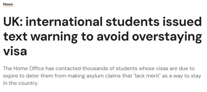 近日,英国内政部(Home Office)向数以万计即将到期的留学生及其家属发出短信或邮件提醒,要求他们在签证到期后合法离境,否则将面临强制遣返。